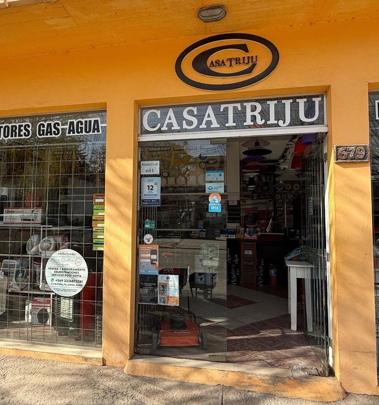 En Casa Triju trabajamos desde hace 36 años para brindarte todo lo que necesitás en un solo lugar. Somos una empresa familiar dedicada a ofrecer soluciones completas para el hogar, con una amplia variedad de productos que incluyen ferretería, herramientas eléctricas, electrodomésticos grandes y pequeños, calefacción, termotanques, cocinas, sanitarios, muebles, iluminación, plomería y mucho más.
